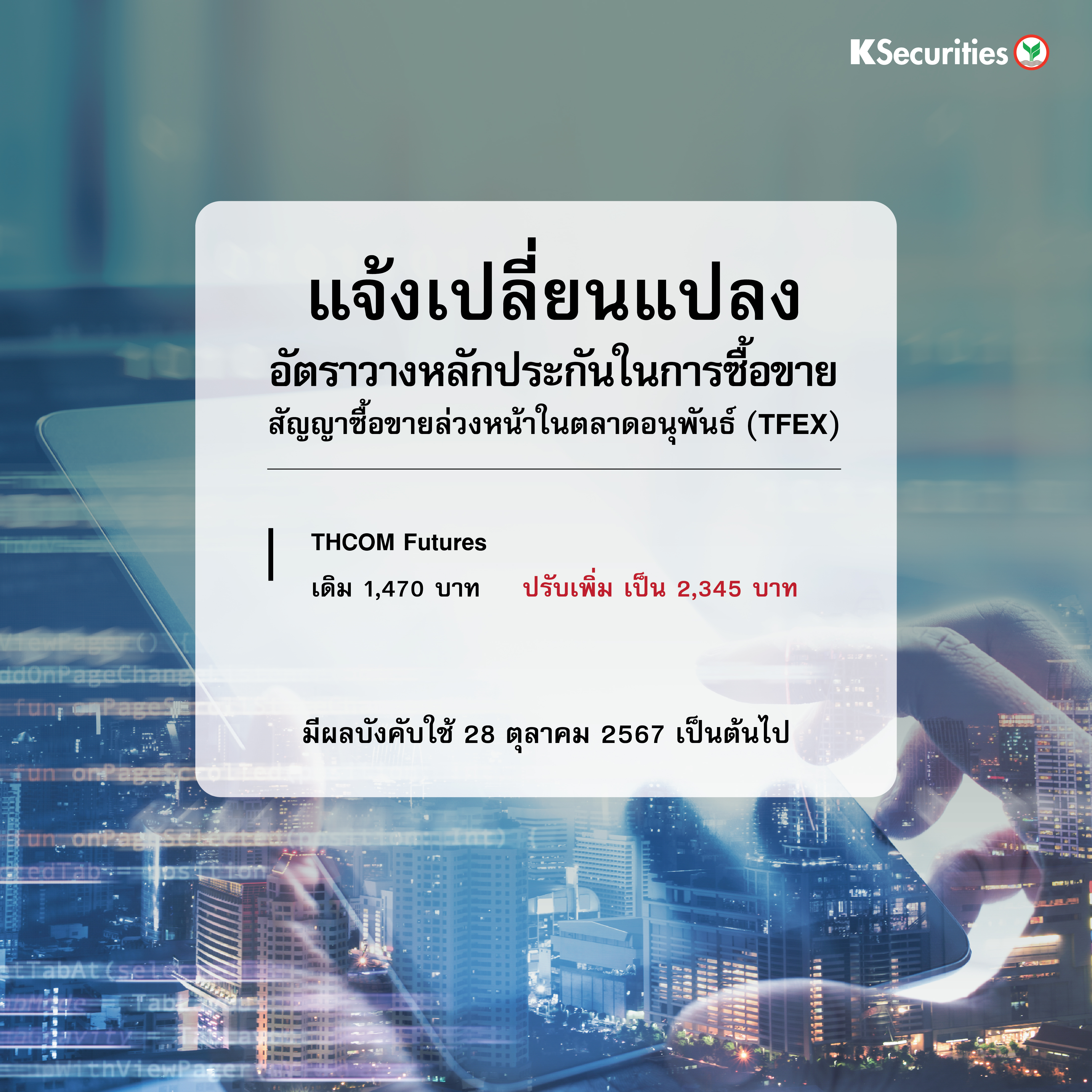 TH Version แจ้งเปลี่ยนแปลงอัตราวางหลักประกันในการซื้อขายสัญญาซื้อขายล่วงหน้าในตลาด TFEX