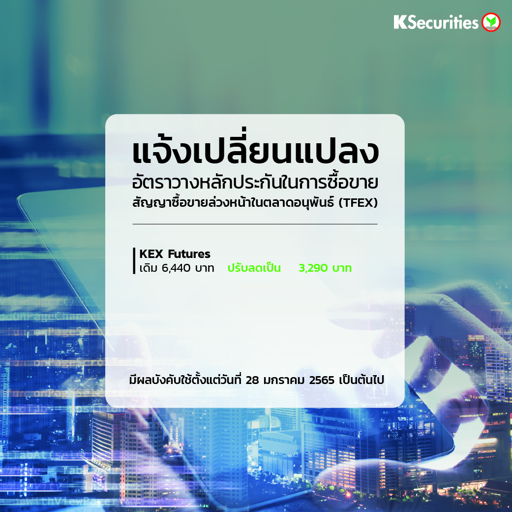 TH Version แจ้งเปลี่ยนแปลงอัตราวางหลักประกันในการซื้อขายสัญญาซื้อขายล่วงหน้าในตลาด TFEX
