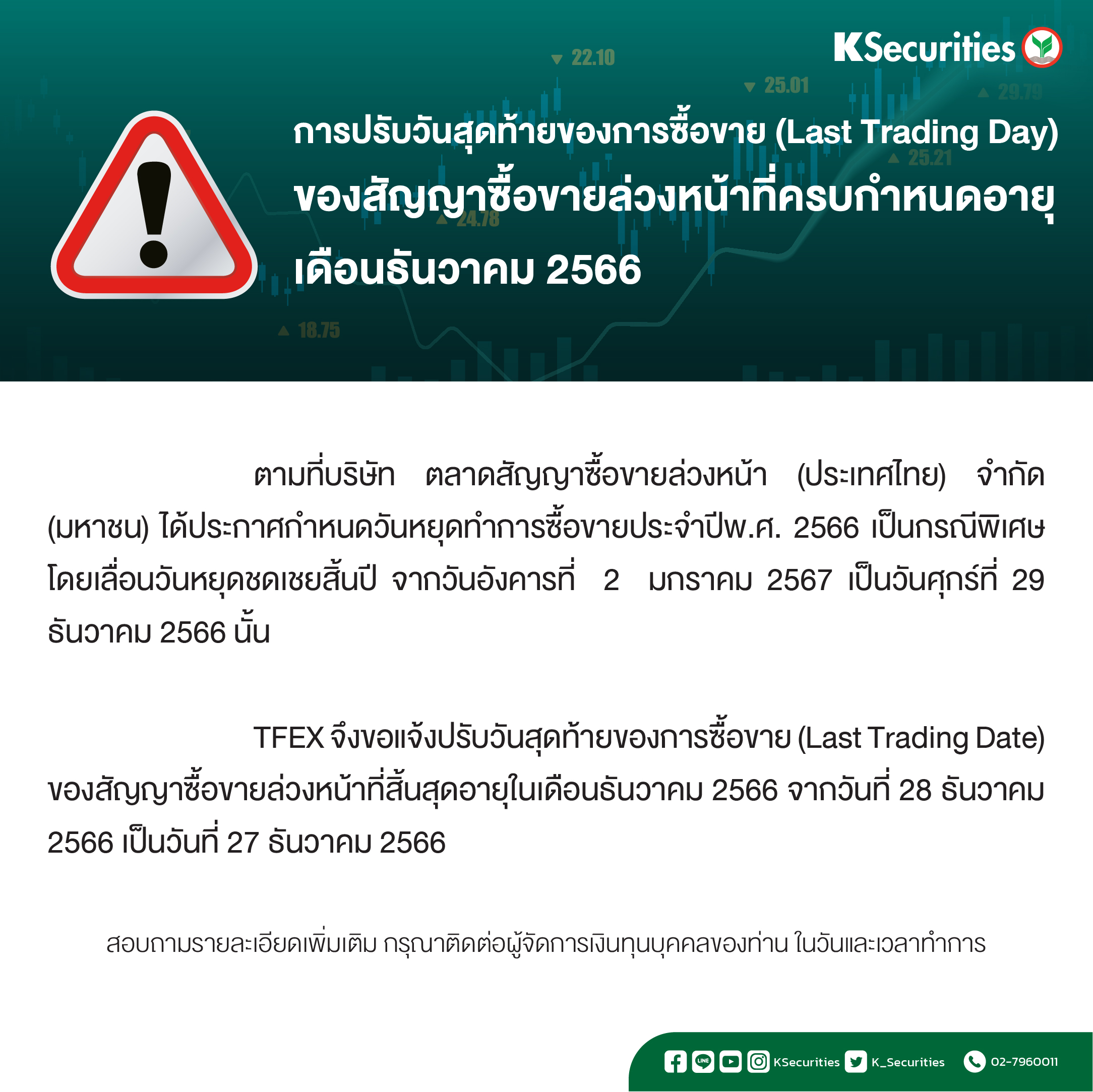 เอกสารการปรับวันสุดท้ายของการซื้อขาย (Last Trading Day) ของสัญญาซื้อขายล่วงหน้าที่ครบกำหนดอายุเดือน ธ.ค. 2566