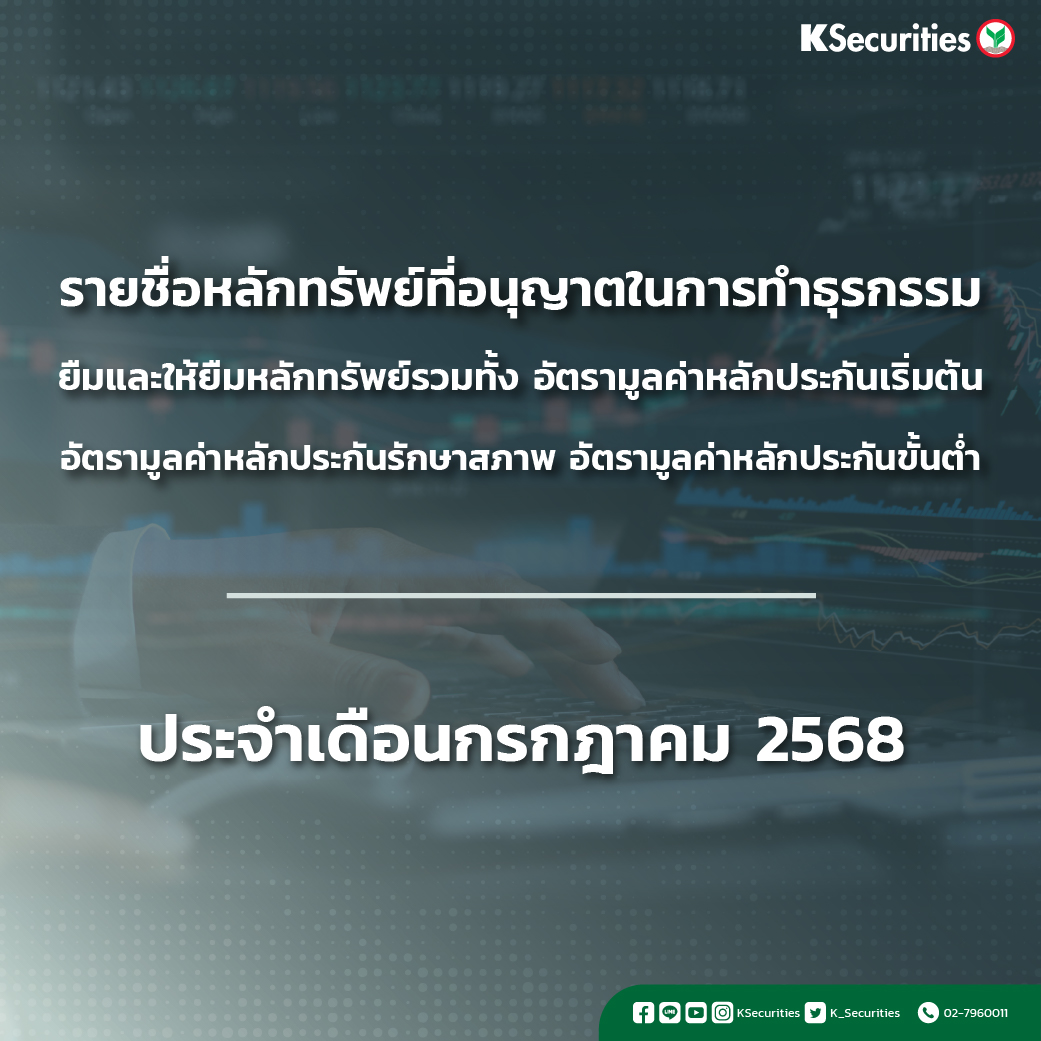 รายชื่อหลักทรัพย์ที่อนุญาตในการทำธุรกรรมยืมและให้ยืมหลักทรัพย์ ประจำเดือนกรกฏาคม 2568