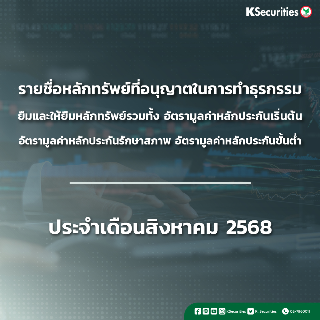 รายชื่อหลักทรัพย์ที่อนุญาตในการทำธุรกรรมยืมและให้ยืมหลักทรัพย์ ประจำเดือนสิงหาคม 2568