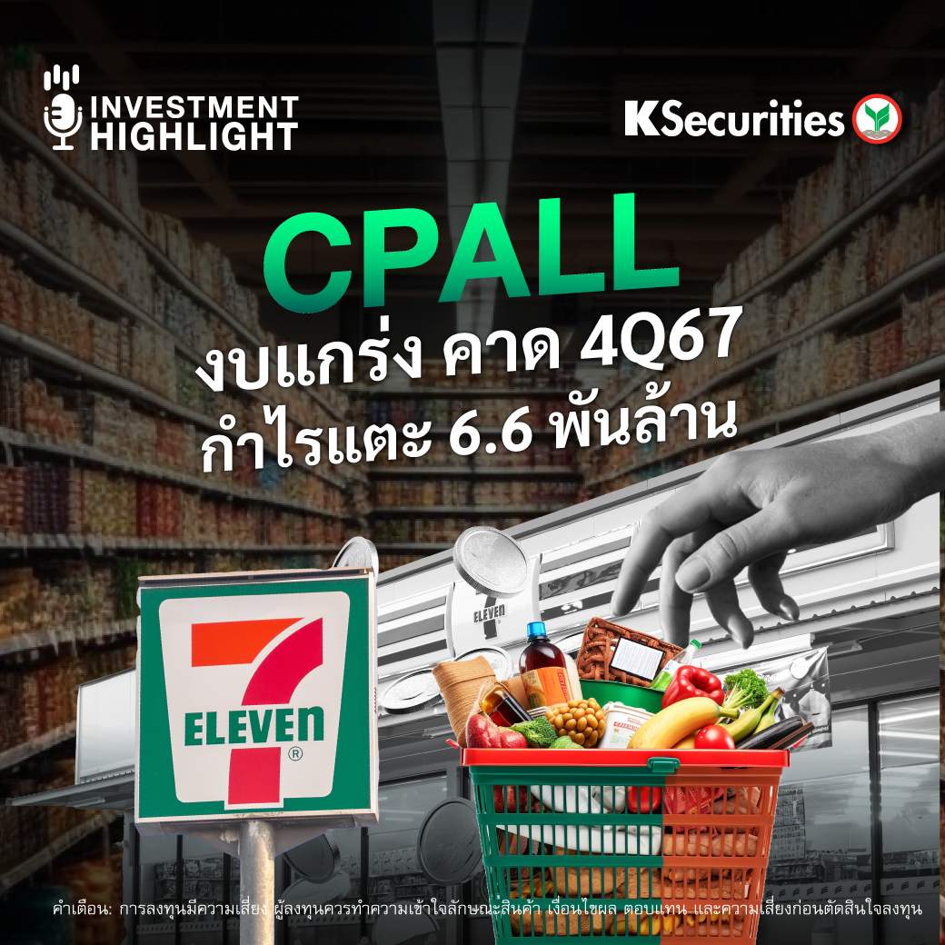 CPALL งบแกร่ง คาด 4Q67 กำไรแตะ 6.6 พันล้าน (20 ม.ค. 67)