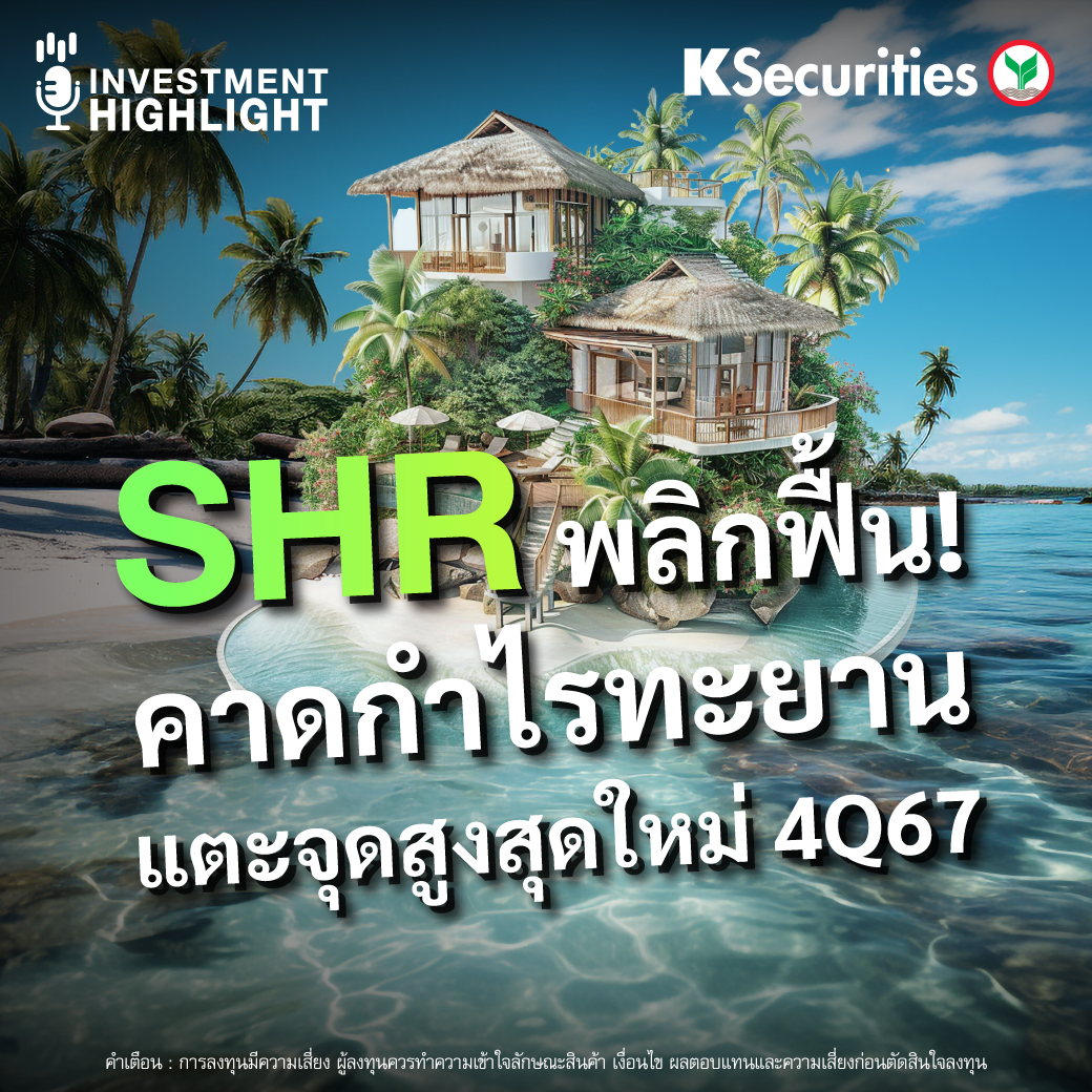 SHR พลิกฟื้น! คาดกำไรทะยาน แตะจุดสูงสุดใหม่ 4Q67 (20 ม.ค. 67)
