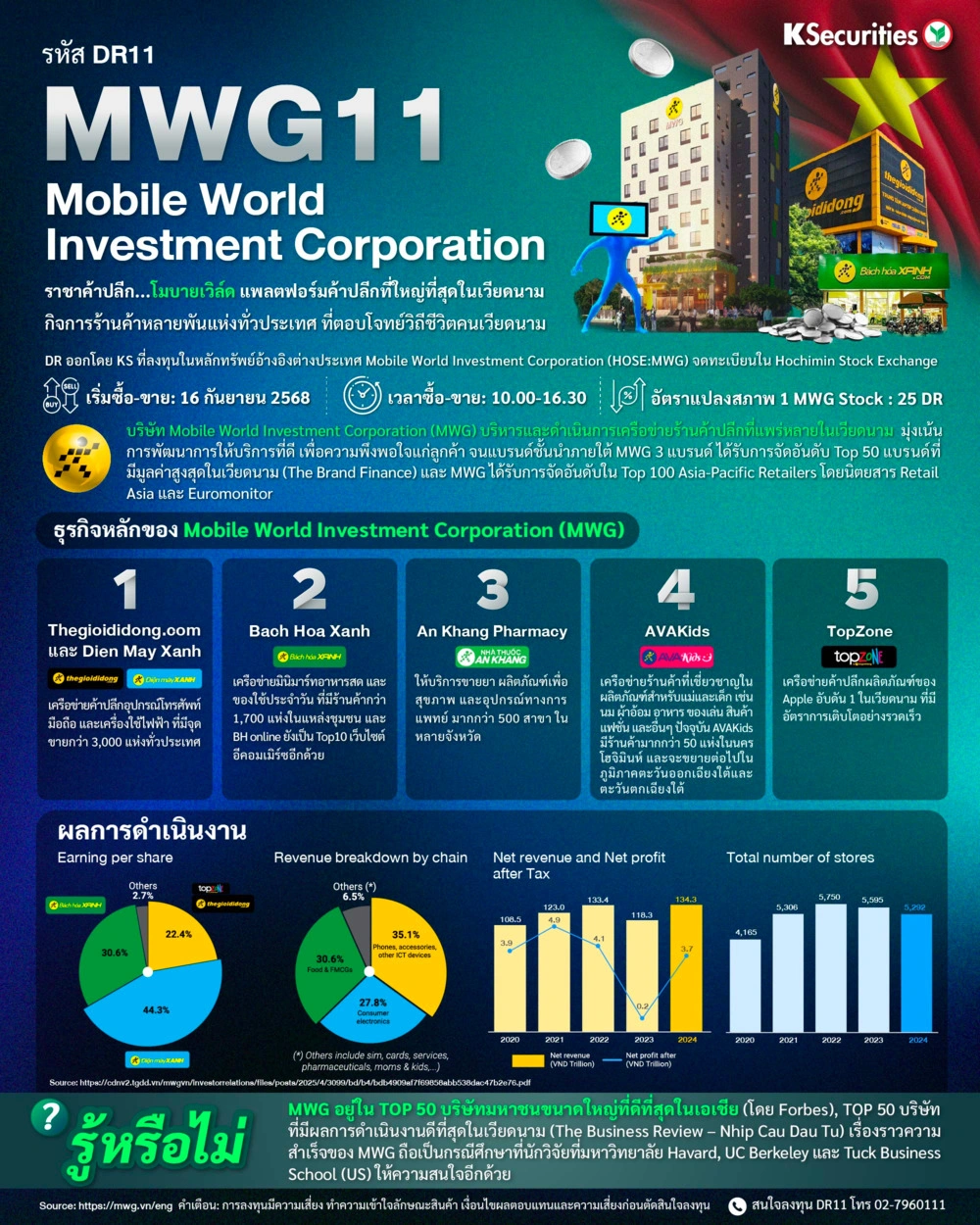 DR ออกโดย KS ที่ลงทุนในหลักทรัพย์อ้างอิงต่างประเทศ Mobile World Investment Corporation (HOSE:MWG) จดทะเบียนใน Hochiminh stock Exchange