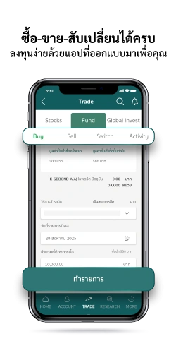 ทำธุรกรรมได้ 3 ช่องทางผ่านแอปพลิเคชัน KS ONE, Streaming Fund+ และผู้แนะนำการลงทุน