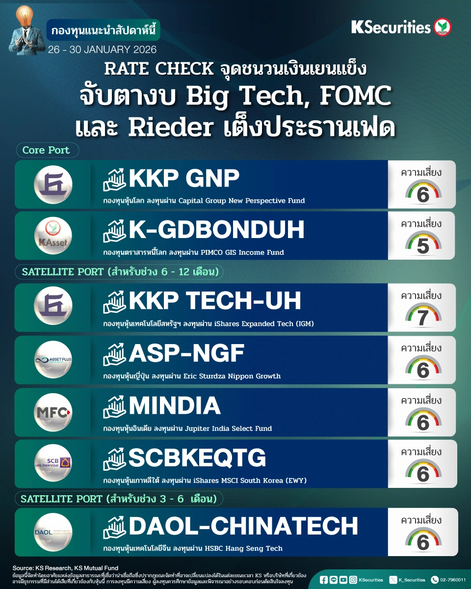 💡 เรายังคงมุมมองเชิงบวก มองความผันผวนเป็นโอกาสสะสม แนะนำถือหุ้นโลกเป็น Core และเสริมธีม AI ผ่านหุ้นเทคสหรัฐฯ เกาหลีใต้ ญี่ปุ่น อินเดีย และจีนเทค ตามจังหวะตลาด 📊✨
