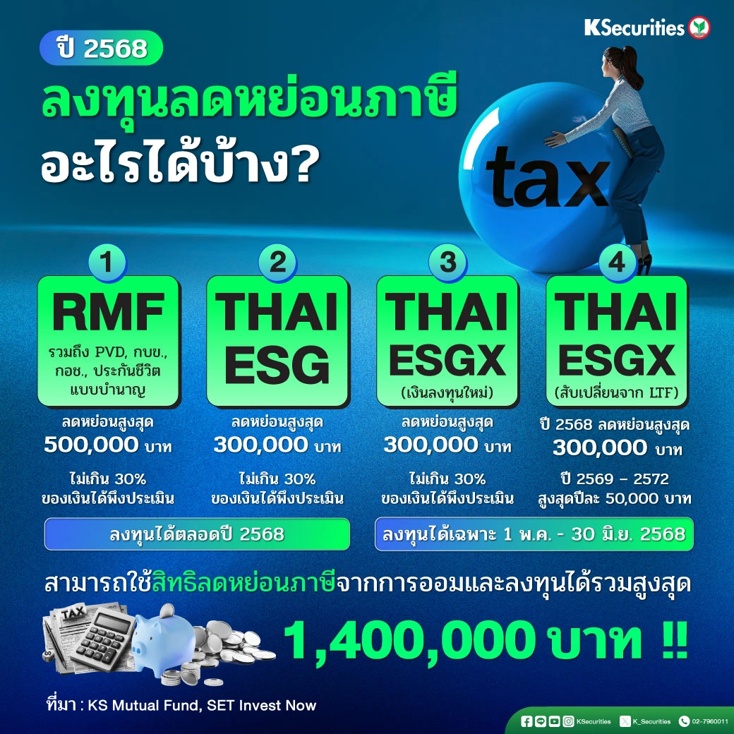 ปี 2568 นี้ ใครอยาก “ลดหย่อนภาษี” ห้ามพลาด! เพราะนอกจากจะได้ออมเงินเพื่ออนาคตแล้วยังได้สิทธิลดหย่อนภาษีสูงสุดถึง 1,400,000 บาท