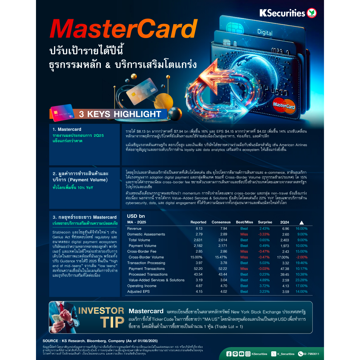 1. Mastercard รายงานผลประกอบการ 2Q25 แข็งแกร่งกว่าคาด