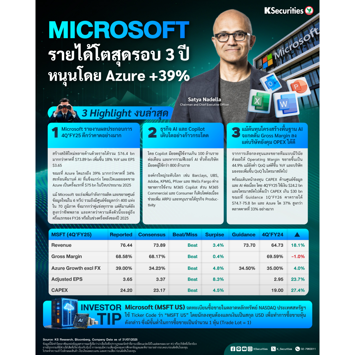 1. Microsoft รายงานผลประกอบการ 4Q’FY25 ดีกว่าคาดอย่างมาก