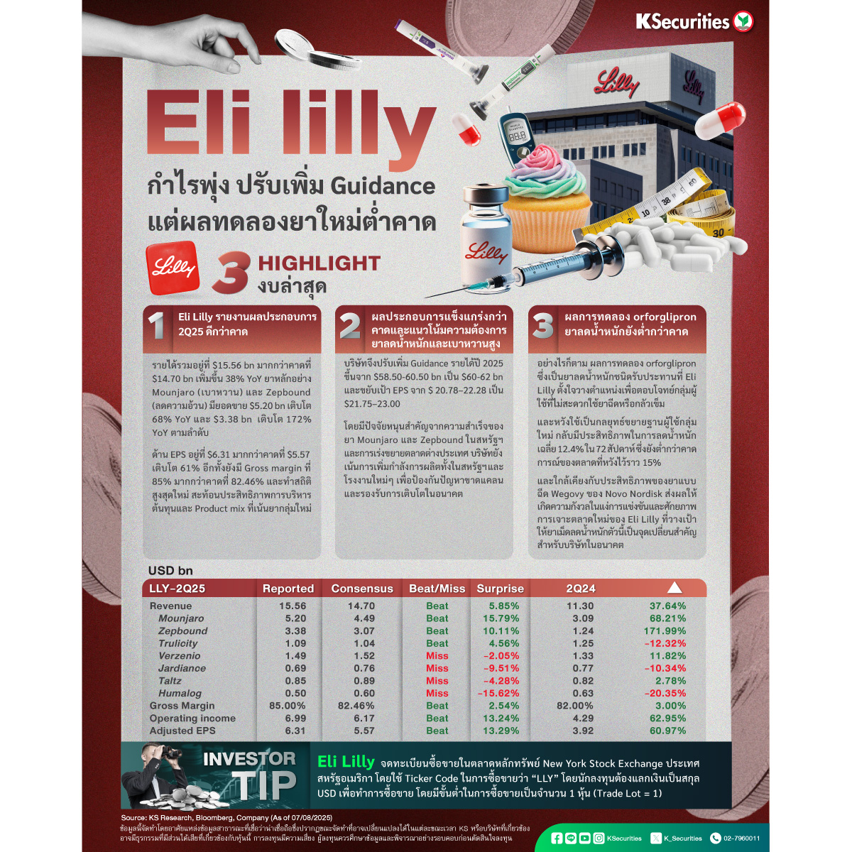 1. Eli Lilly รายงานผลประกอบการ 2Q25 ดีกว่าคาด