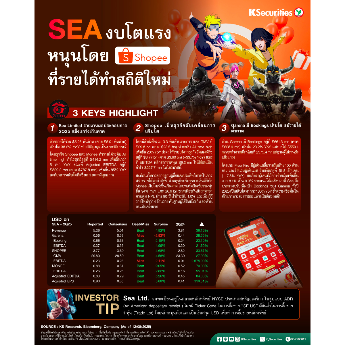 1. Sea Limited รายงานผลประกอบการ 2Q25 แข็งแกร่งเกินคาด
