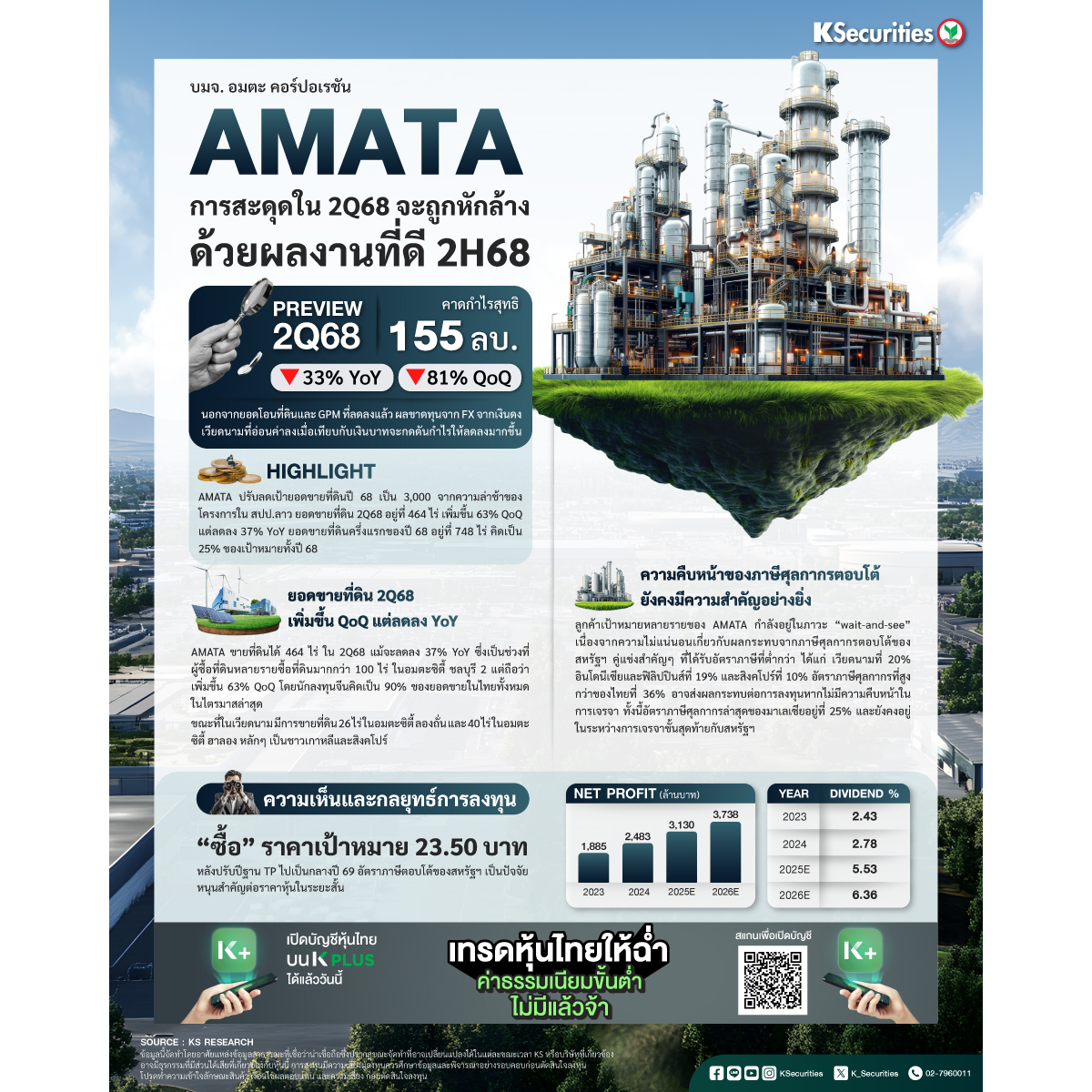 AMATA การสะดุดใน 2Q68 จะถูกหักล้างด้วยผลงานที่ดี 2H68