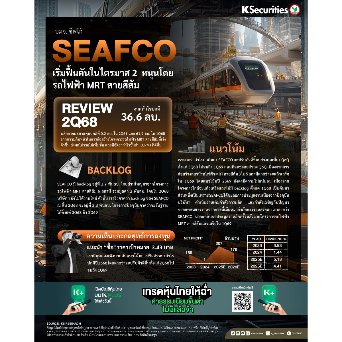 SEAFCO : เริ่มฟื้นตันในไตรมาส 2  หนุนโดยรถไฟฟ้า MRT สายสีส้ม