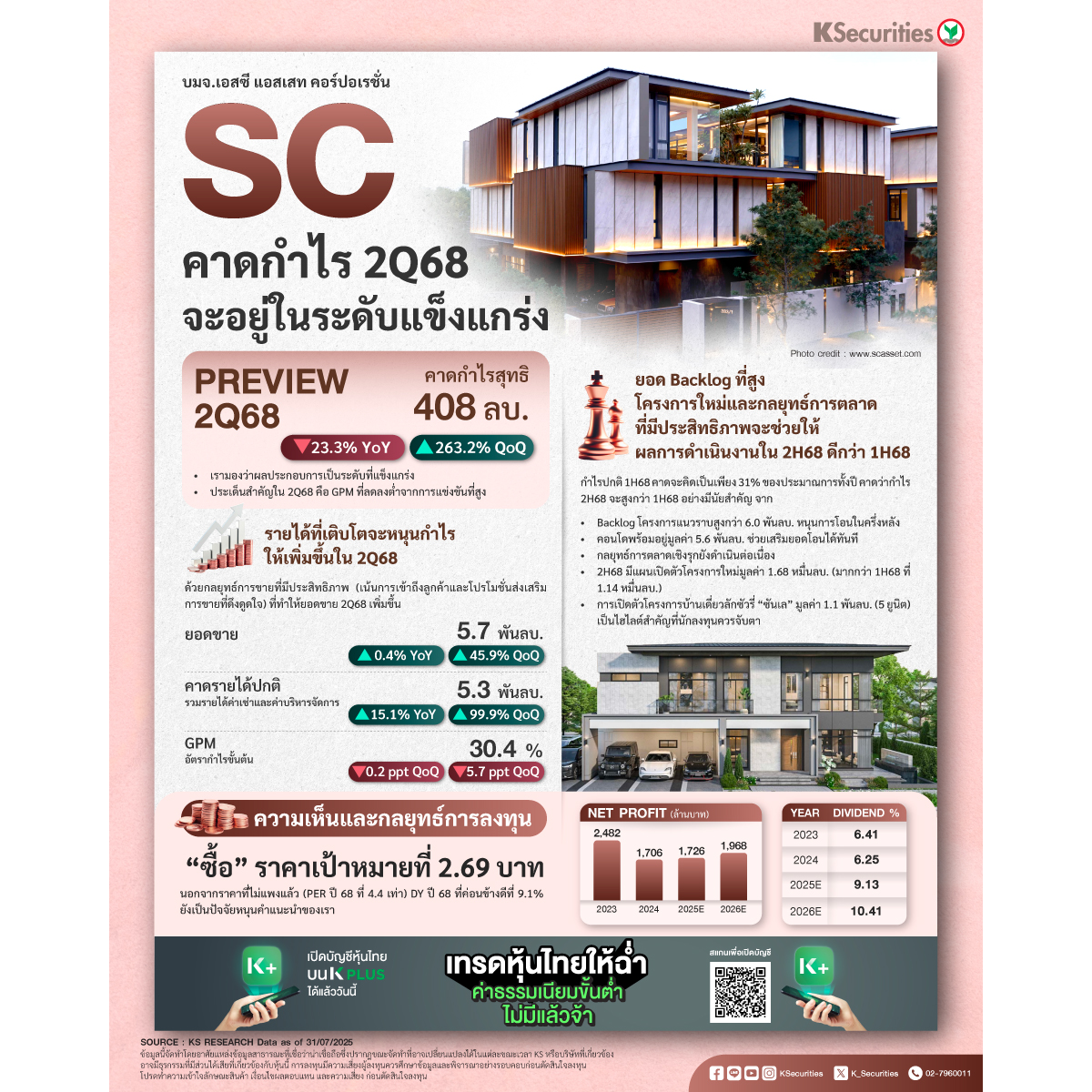 SC คาดกำไร 2Q68 จะอยู่ในระดับแข็งแกร่ง