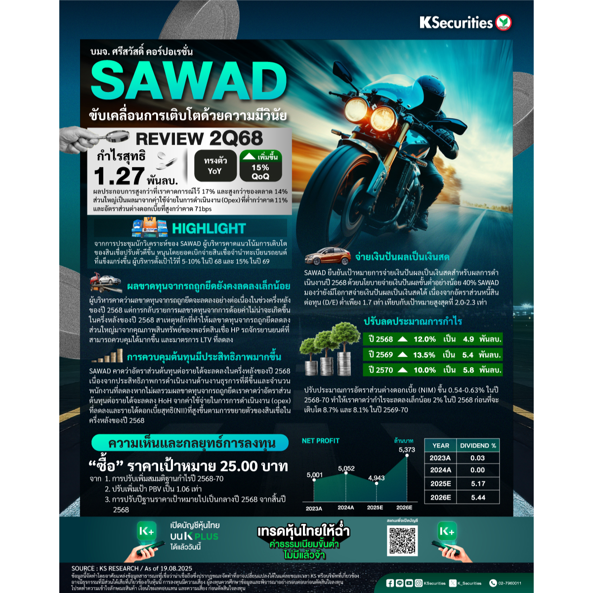 - แนวโน้มการเติบโตของสินเชื่อปรับตัวดีขึ้น หนุนโดยยอดเบิกจ่ายสินเชื่อจำนำทะเบียนรถยนต์ที่แข็งแกร่งขึ้น ผู้บริหารตั้งเป้าไว้ที่ 5-10% ในปี 68 และ 15% ในปี 69