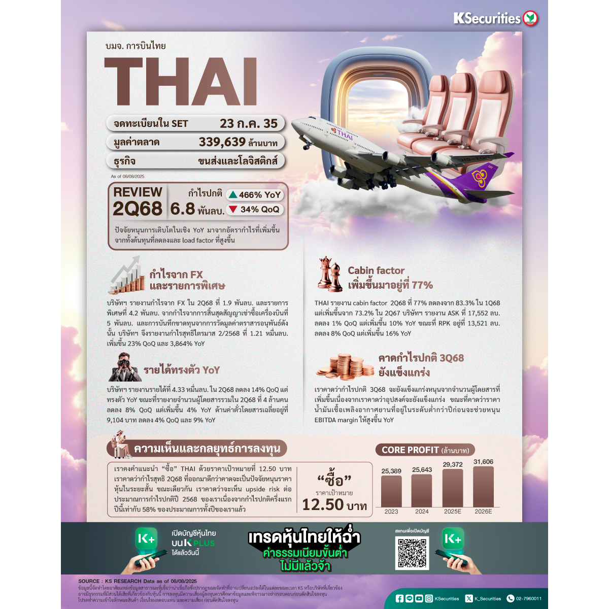 THAI : กำไรปกติไตรมาส 2/68 ดีกว่าคาด