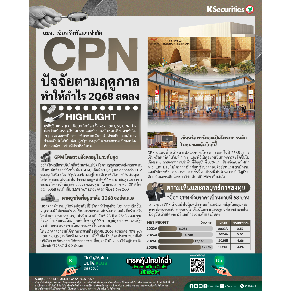 CPN ปัจจัยตามฤดูกาลทำให้กำไร 2Q68 ลดลง