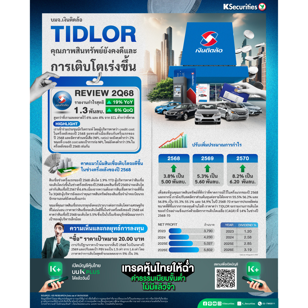 #KS #หลักทรัพย์กสิกรไทย #KSecurities #หุ้น #หุ้นไทย #ข่าวหุ้น #ลงทุน #TIDLOR