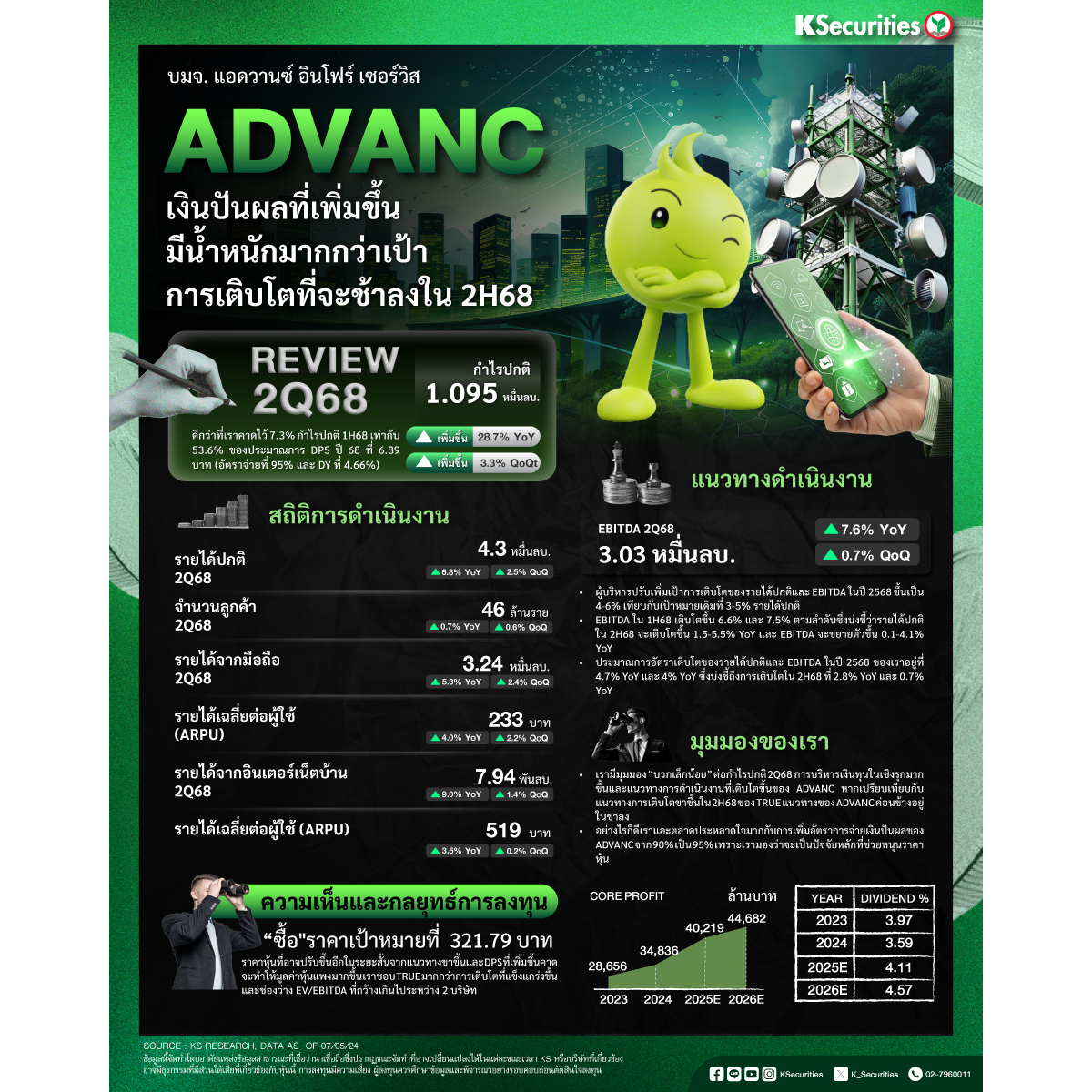 ADVANC : เงินปันผลที่เพิ่มขึ้นมีน้ำหนักมากกว่าเป้าการเติบโตที่จะช้าลงใน 2H68