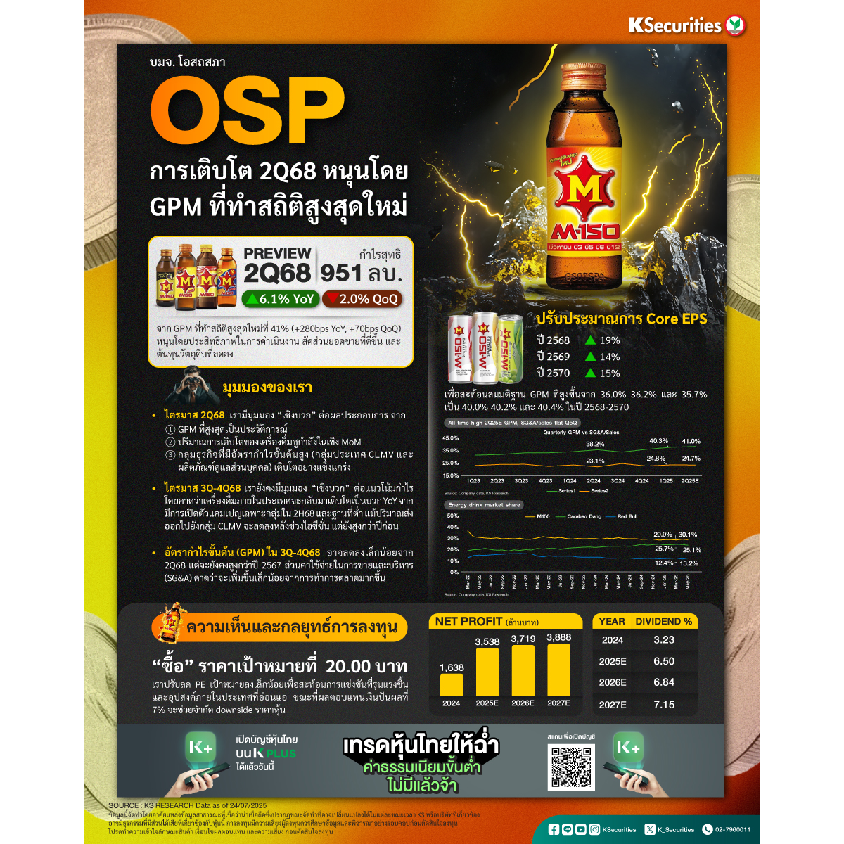 OSP : การเติบโต 2Q68 หนุนโดย GPM ที่ทำสถิติสูงสุดใหม่