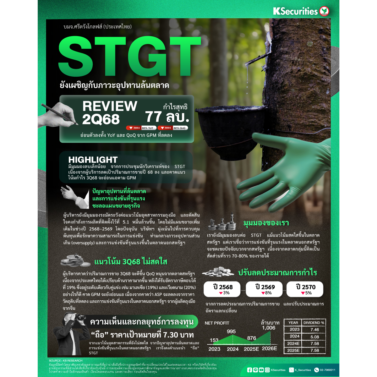 • มีมุมมองลบเล็กน้อย จากการประชุมนักวิเคราะห์ของ STGT เนื่องจากผู้บริการลดเป้าปริมาณการขายปี 68 ลง และคาดแนวโน้มกำไรไตรมาส 3/68 จะอ่อนแอตาม GPM