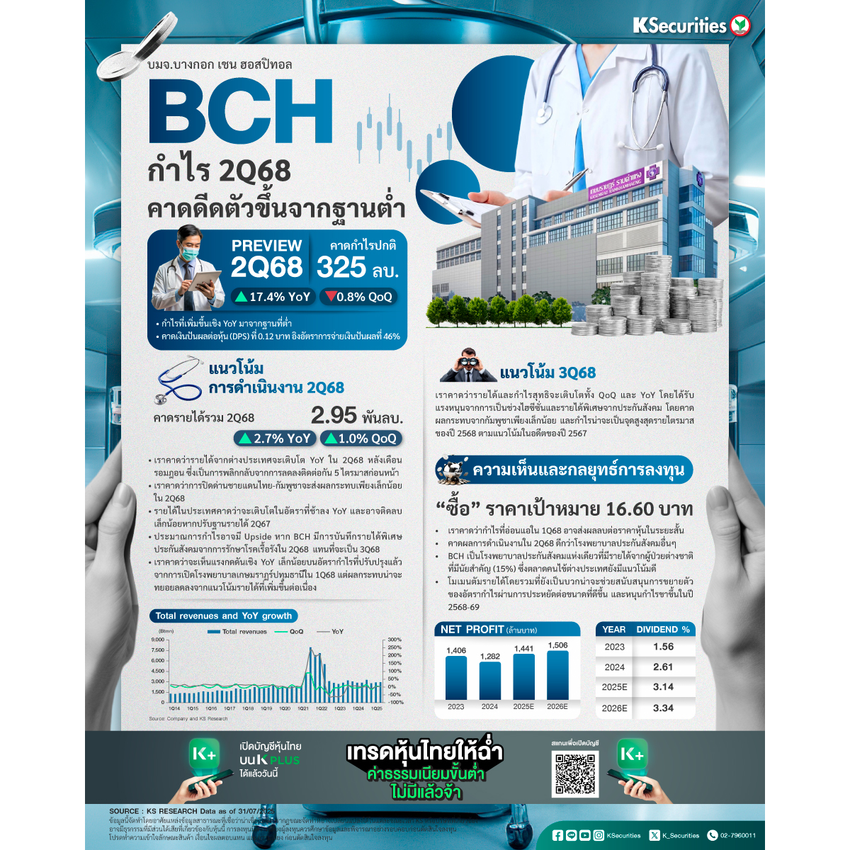 BCH : กำไรไตรมาส 2/68 น่าจะดีดตัวขึ้นจากฐานต่ำ