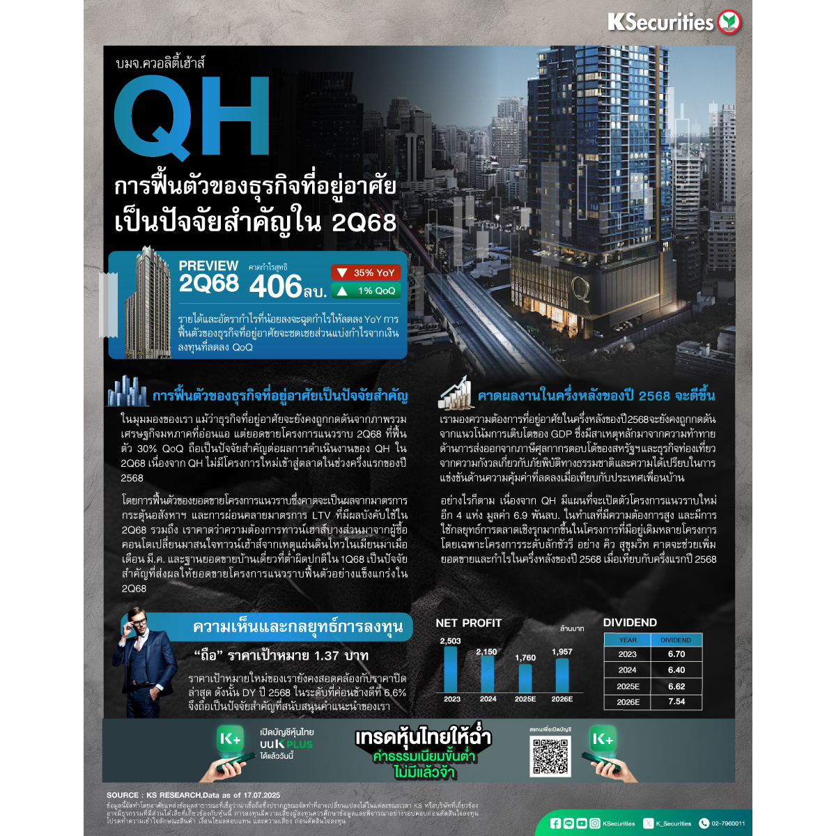 QH : การฟื้นตัวของธุรกิจที่อยู่อาศัยเป็นปัจจัยสำคัญใน 2Q68