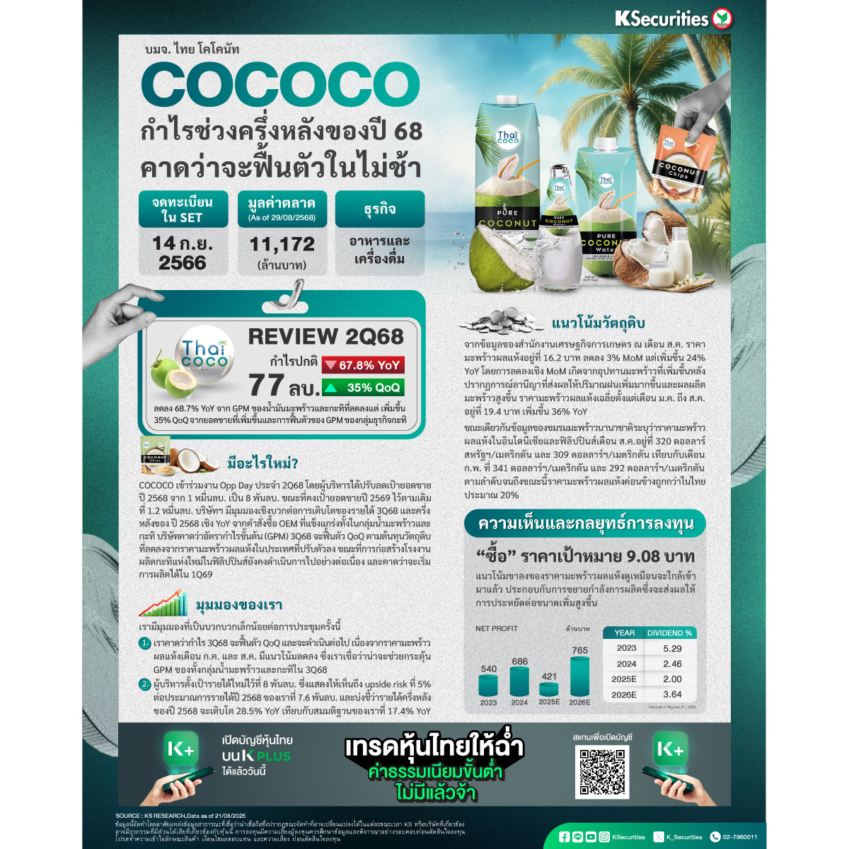 COCOCO กำไรช่วงครึ่งหลังของปี 68คาดว่าจะฟื้นตัวในไม่ช้า