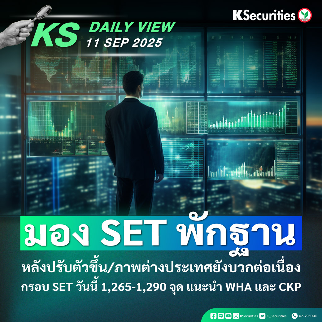 KS Daily View 11.09.2025 >>> มอง SET พักฐาน หลังปรับตัวขึ้นแล้ว ภาพต่างประเทศยังบวกต่อเนื่อง กรอบ SET วันนี้ 1,265-1,290 จุด แนะนำ WHA และ CKP