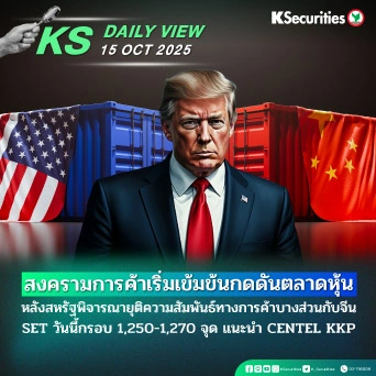 KS Daily View 27.10.2025 >>> ตลาด Sideway up จากภาพเชิงบวกต่างประเทศ การค้าสหรัฐ-จีนดูผ่อนคลายลง กรอบ SET วันนี้ 1,305–1,325 จุด แนะนำ KCE และ TFM