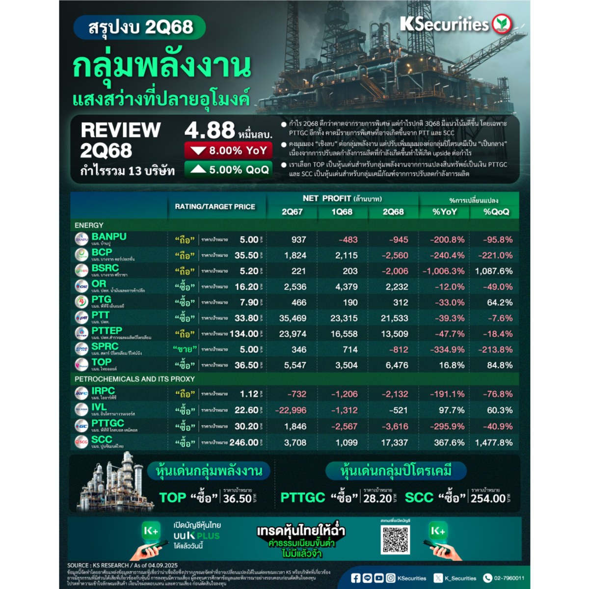 #KS #หลักทรัพย์กสิกรไทย #KSecurities #การลงทุน #การลงทุนหลักทรัพย์ #ผลตอบแทน #ข่าวหุ้น #หุ้นไทย #EnergySector #กลุ่มพลังงาน #ปิโตรเคมี