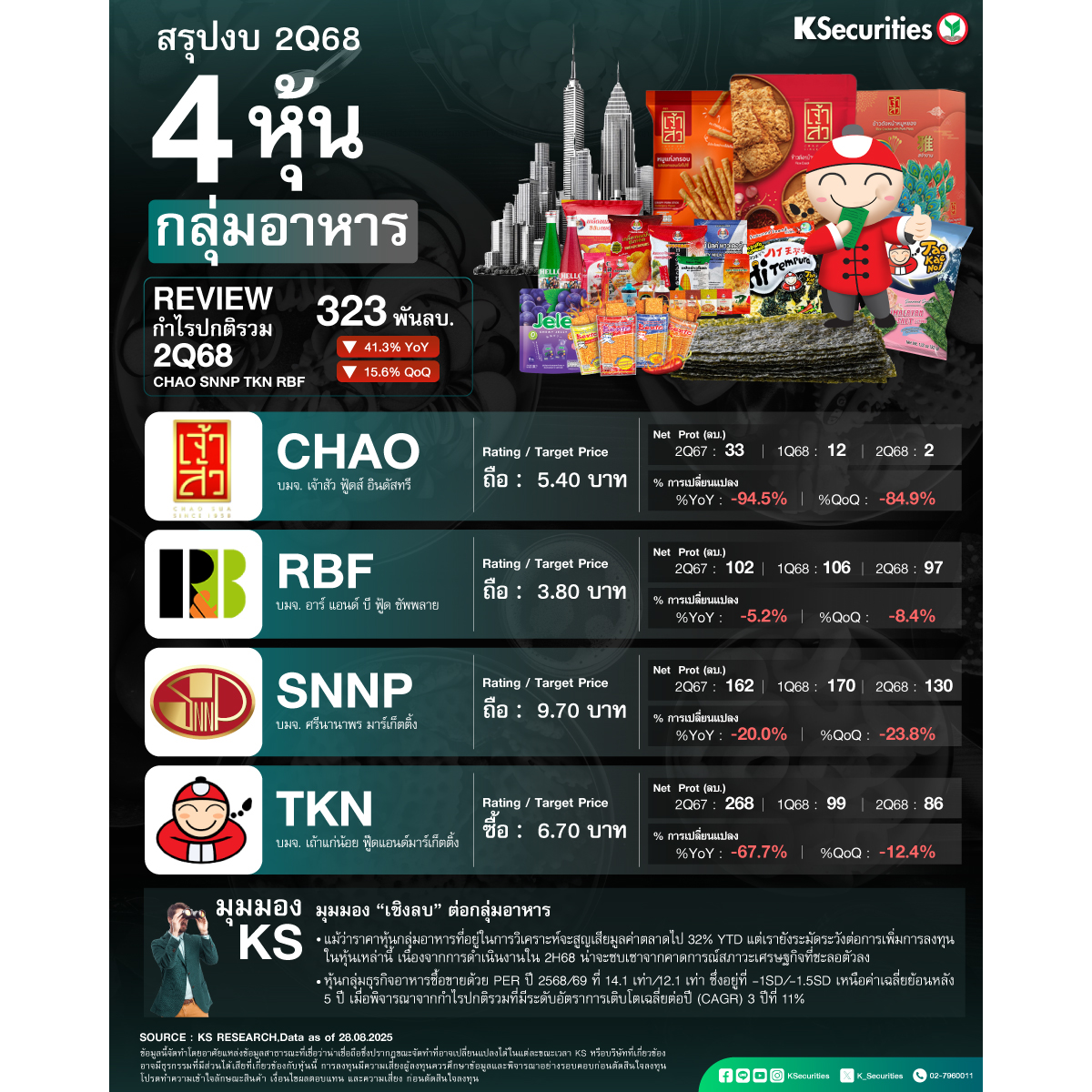 KS: สรุปงบ 2Q68 4 หุ้นกลุ่มอาหาร