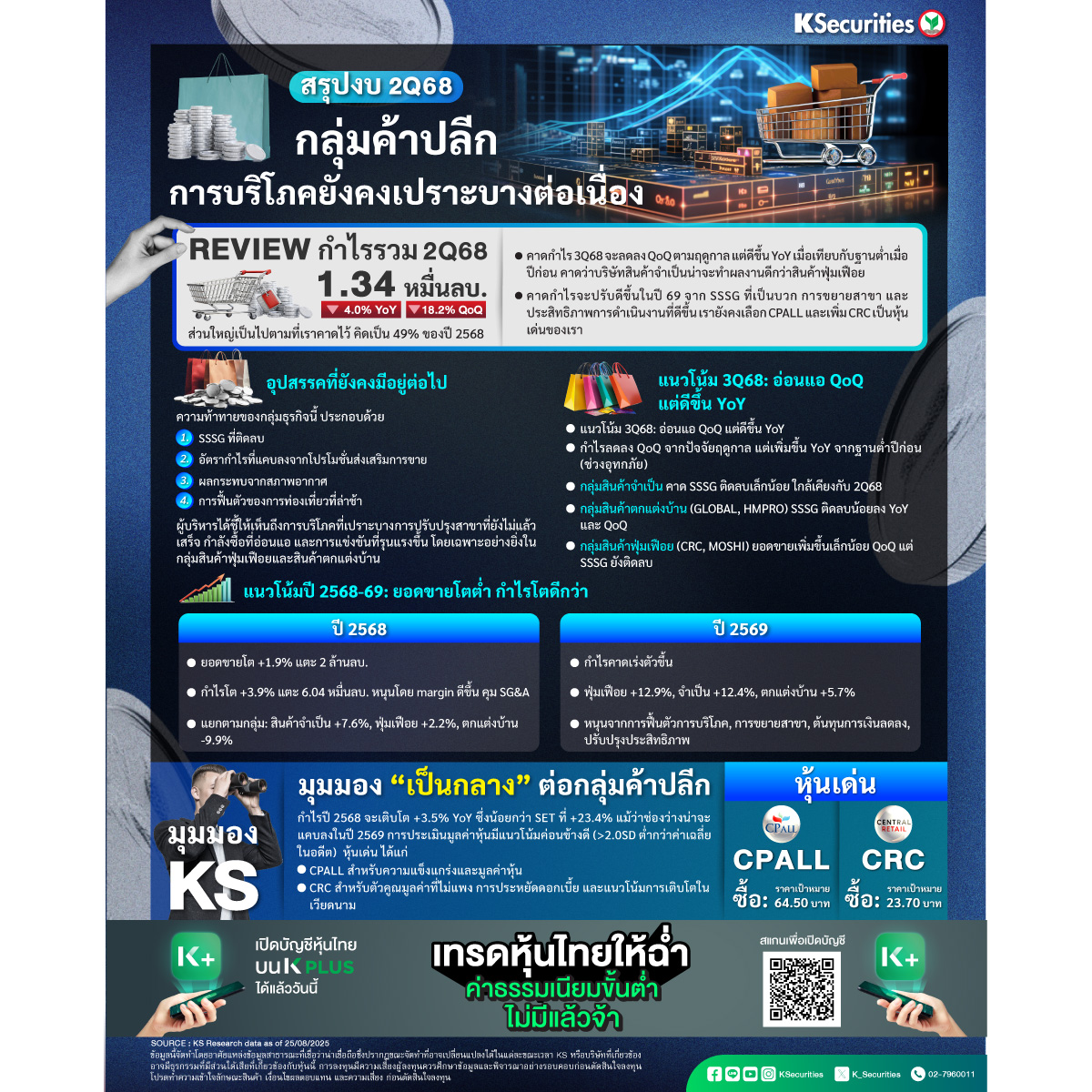 สรุปงบ 2Q68 กลุ่มค้าปลีก การบริโภคยังคงเปราะบางต่อเนื่อง