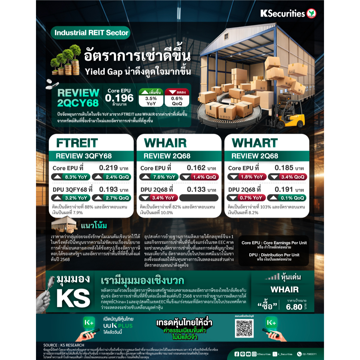 #KS #หลักทรัพย์กสิกรไทย #KSecurities #หุ้น #หุ้นไทย #ข่าวหุ้น #ลงทุน #IndustrialREIT #REIT #FTREIT #WHAIR #WHART