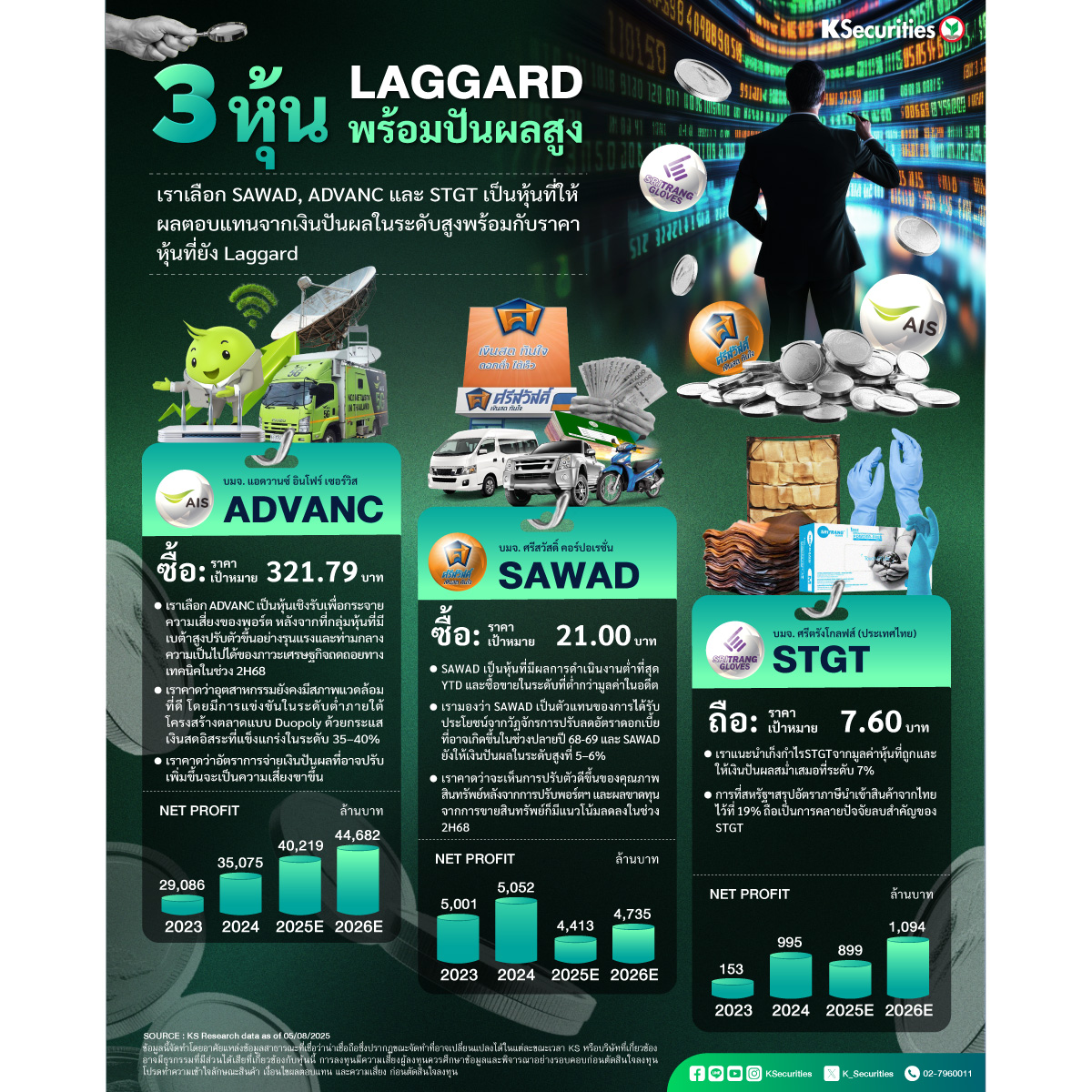 #KS #หลักทรัพย์กสิกรไทย #KSecurities #การลงทุน #การลงทุนหลักทรัพย์ #ผลตอบแทน #ข่าวหุ้น #หุ้นไทย #ADVANC #SAWAD #STGT #หุ้นเด่น #หุ้นปันผล