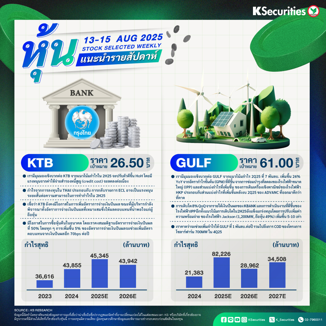 #KS #หลักทรัพย์กสิกรไทย #KSecurities #การลงทุน #การลงทุนหลักทรัพย์ #ผลตอบแทน #ข่าวหุ้น #หุ้นไทย #Weekly #KTB #GULF