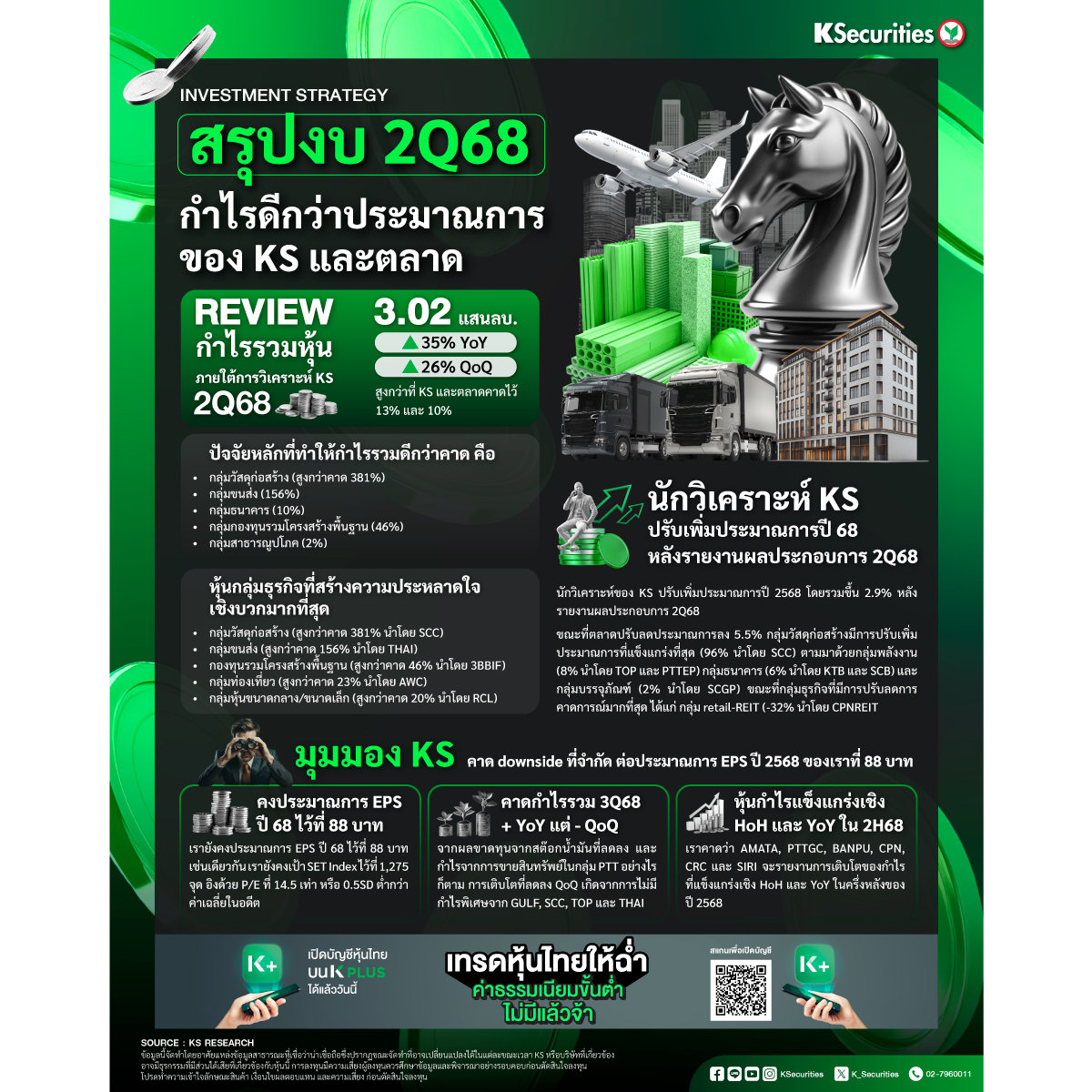 สรุปงบ 2Q68 : กำไร 2Q68 ดีกว่าประมาณการของ KS และตลาด